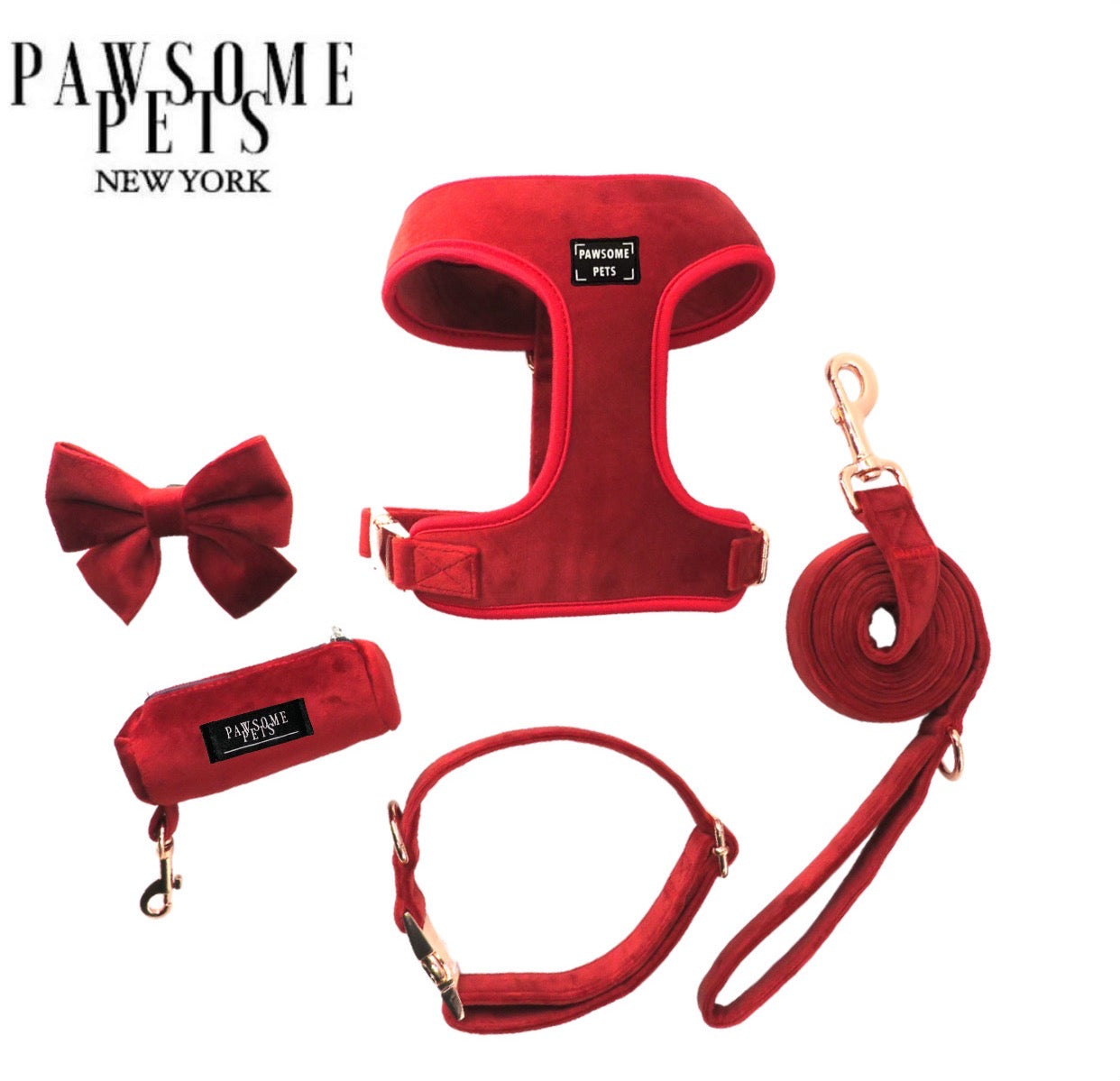 Our Pawsome Pets New York walking set that PETS LOVE! Our soft and pets harnesses, collars,leads,bowtie and waste bag holder are extremely durable and can be adjusted to fit cats,petite and big pups.
